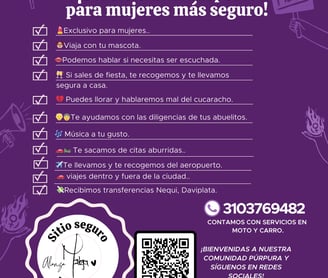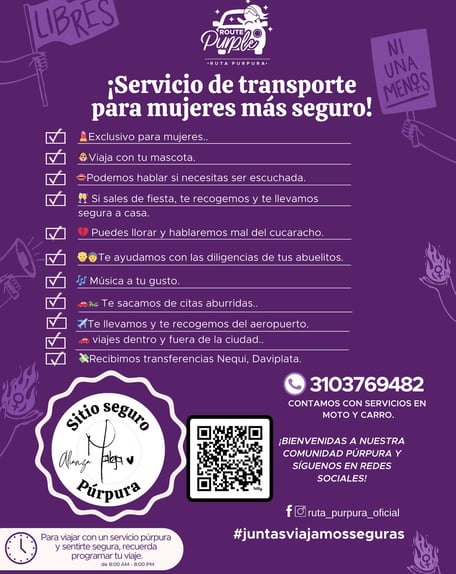 Aquí, no solo esperas tu transporte con total tranquilidad, sino que también encuentras un refugio diseñado para protegerte en cualquier momento de inseguridad. Este espacio es tu aliado, garantizando tu seguridad y resguardándote si lo necesitas. Además, ¡es el punto de encuentro perfecto para conectar con otras mujeres y apoyar los negocios locales de nuestra ciudad! Tu seguridad y bienestar están en el corazón de nuestra misión.
